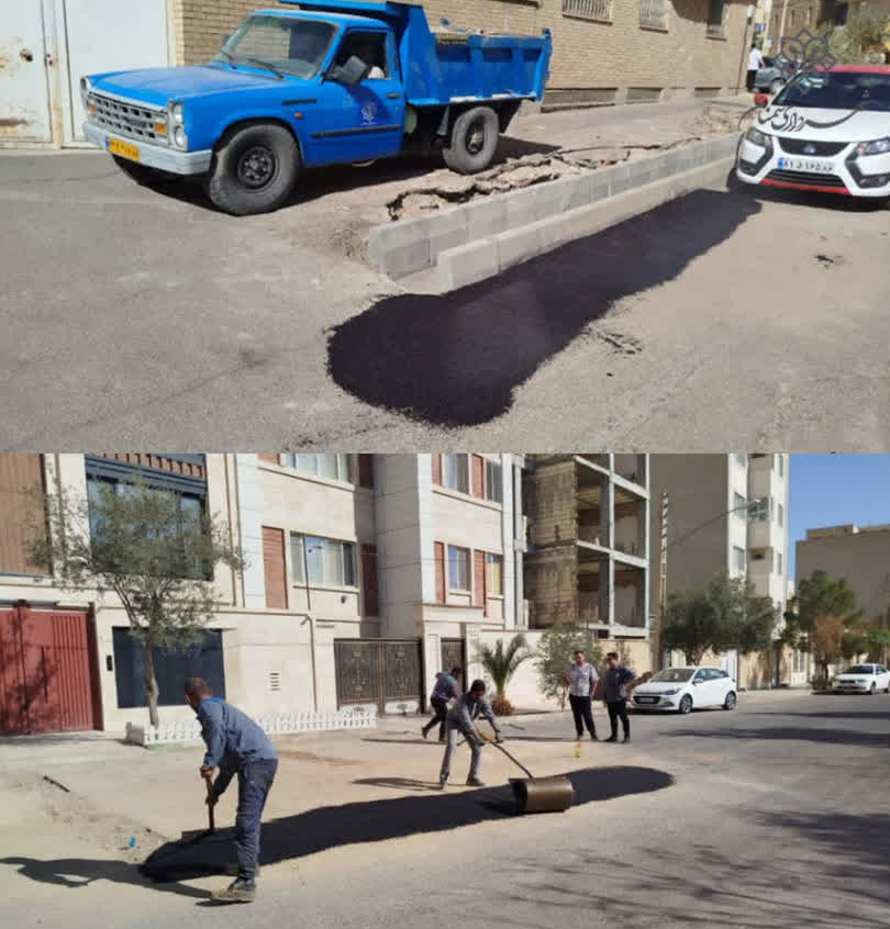 تداوم عملیات ترمیم و لکه گیری آسفالت در سطح ناحیه ۲ منطقه سه شهری