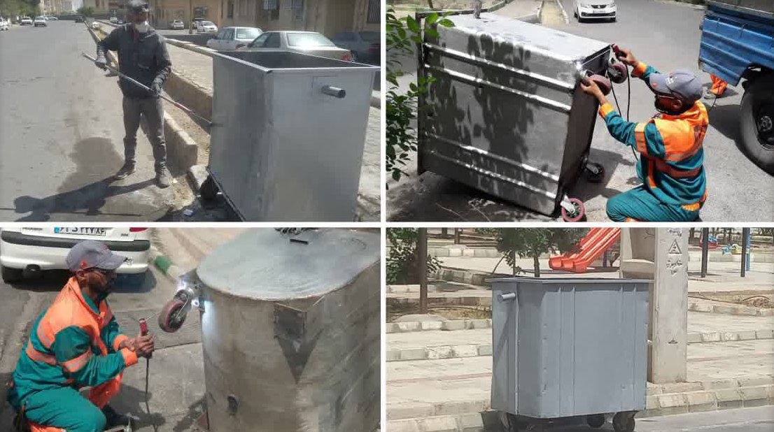 اجرای عملیات رنگ آمیزی، بازسازی و تعمیر مخازن زباله مکانیزه سطح شهر سمنان