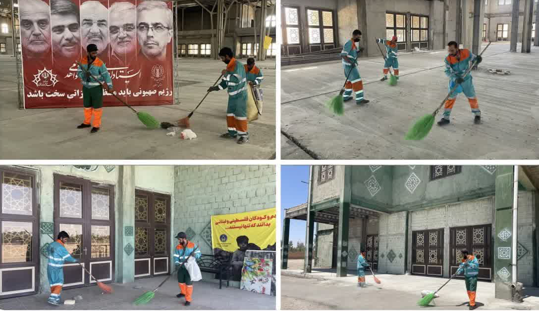پاکـسازی و نظافت مصـلی بزرگ سـمنان جهت برگزاری نمـاز جمـعه