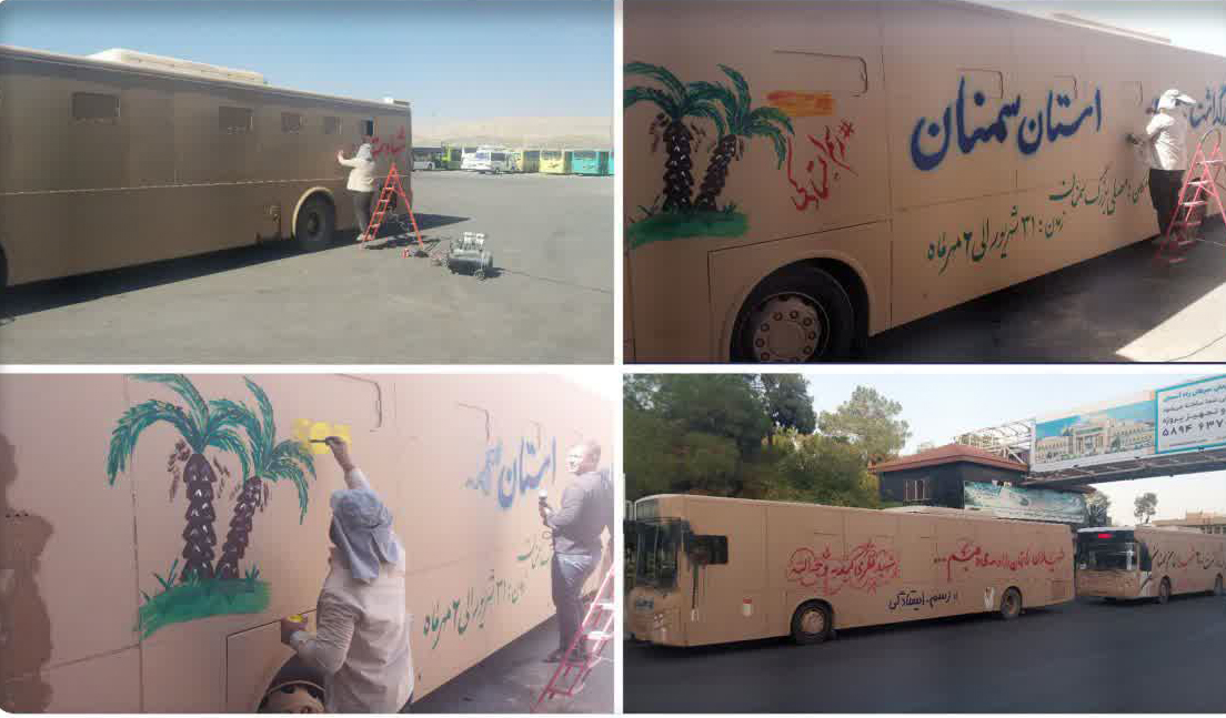 🔸به گزارش مدیریت ارتباطات و امور بین الملل شهرداری سمنان، ۸ اتوبوس‌ شهری توسط عوامل اجرایی سازمان مدیریت حمل و نقل بار و مسافر شهرداری و عوامل برگزاری کنگره شهدا، با طراحی گل‌اندود، مزین به شعائر ارزشی و تبلیغی دومین کنگره ملی بزرگداشت۳۰۰۰شهید استان سمنان شد.
